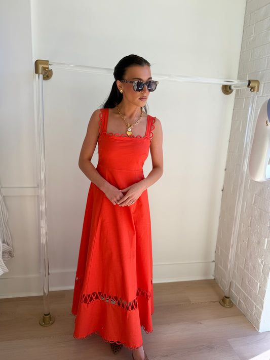 Sold outLINEN SCALLOPED DETAIL MIDI DRESS