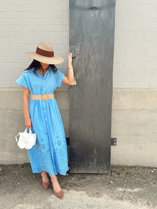 BELTED EYELET DRESS