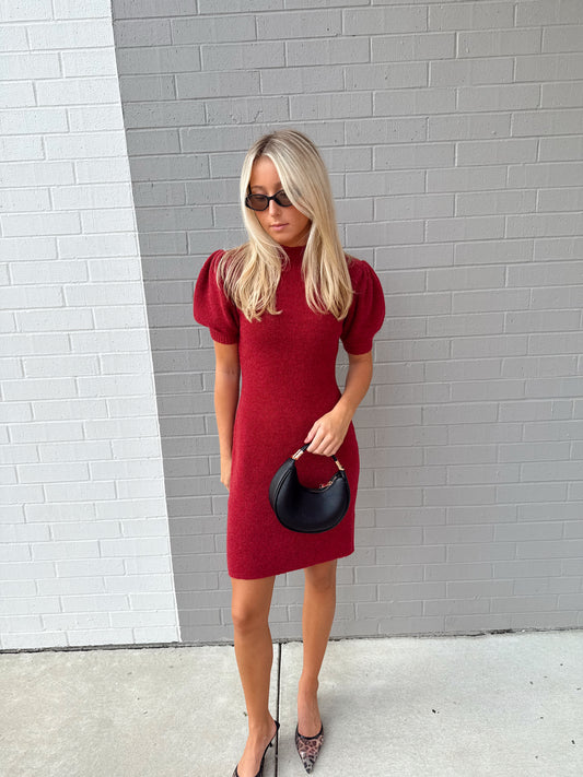 MOCK NECK PUFF SHORT SLEEVE MINI DRESS