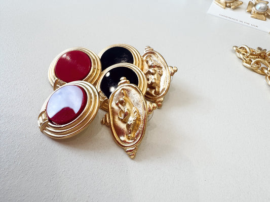 GOLD ROUND W/ BLACK EARRINGS