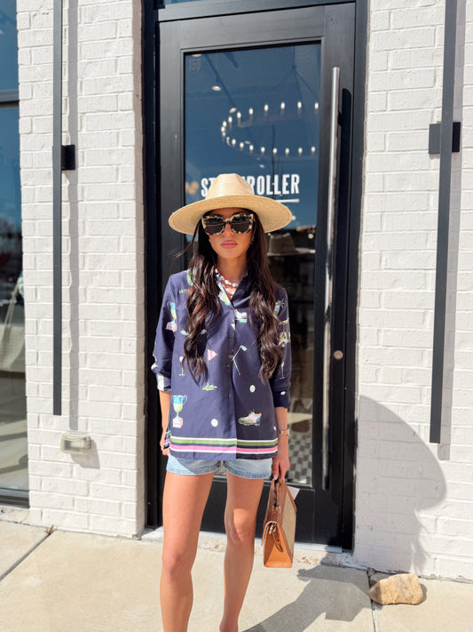 NAVY GOLF PRINT SHIRT