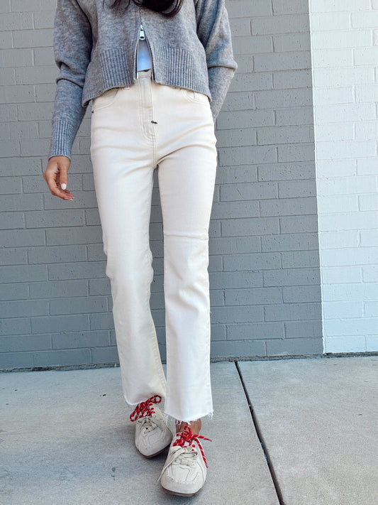SHY GIRL CROP FLARE IN RAW CUT