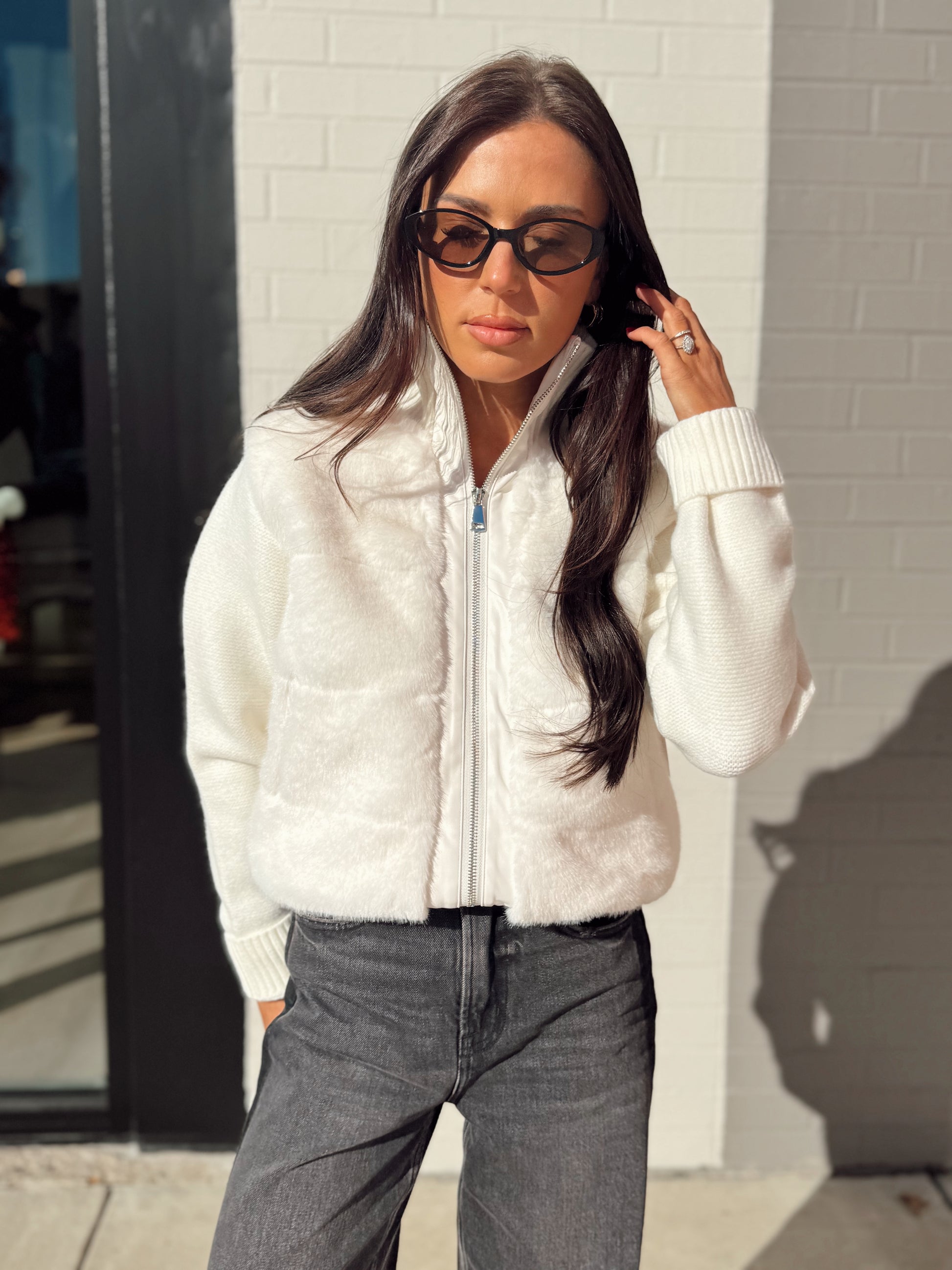 FAUX FUR VEGAN LEATHER TRIM QUILTED JACKET