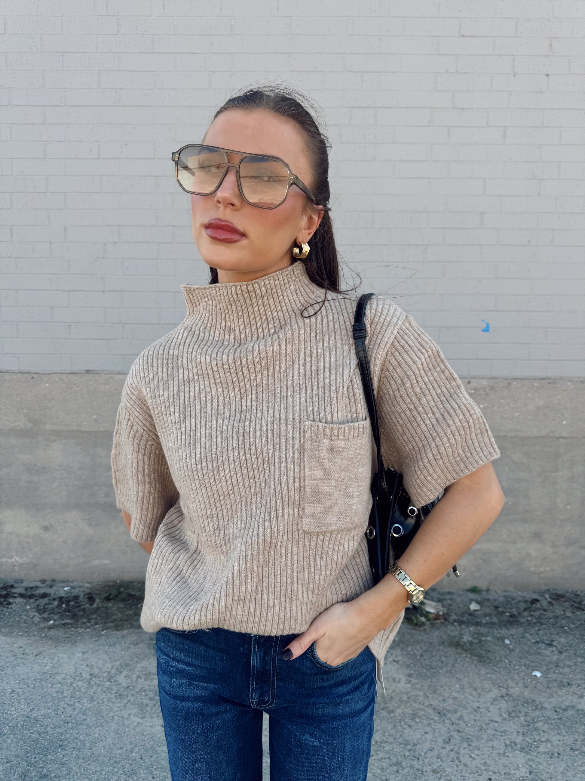 MOCK NECK HALF SLEEVE SWEATER